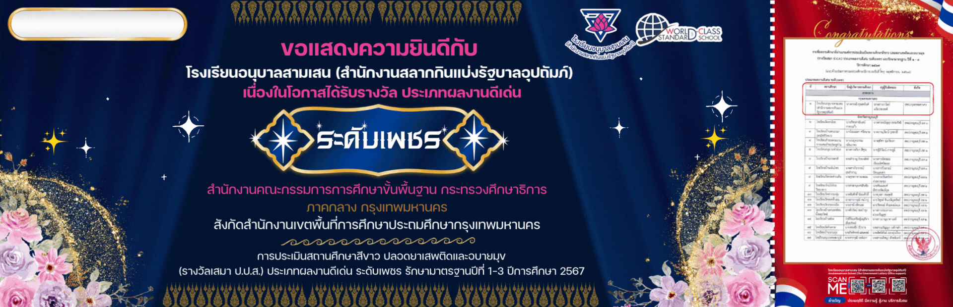 โรงเรียนอนุบาลสามเสน (สำนักงานสลากกินแบ่งรัฐบาลอุปถัมภ์) มีจุดมุ่งหมายที่จะพัฒนาด้านคุณธรรมและความโปร่งใสในหน่วยงานภาครัฐ ให้ความร่วมมือและเข้าร่วมการประเมินคุณธรรมและความโปร่งใสในการดำเนินงานของหน่วยงานภาครัฐ ปีงบประมาณ พ.ศ. 2561 – 2565 โดยใช้แนวทางและเครื่องมือการประเมินตามที่สำนักงานคณะกรรมการป้องกันและปราบปรามการทุจริตแห่งชาติ หรือ สำนักงาน ป.ป.ช. กำหนด
