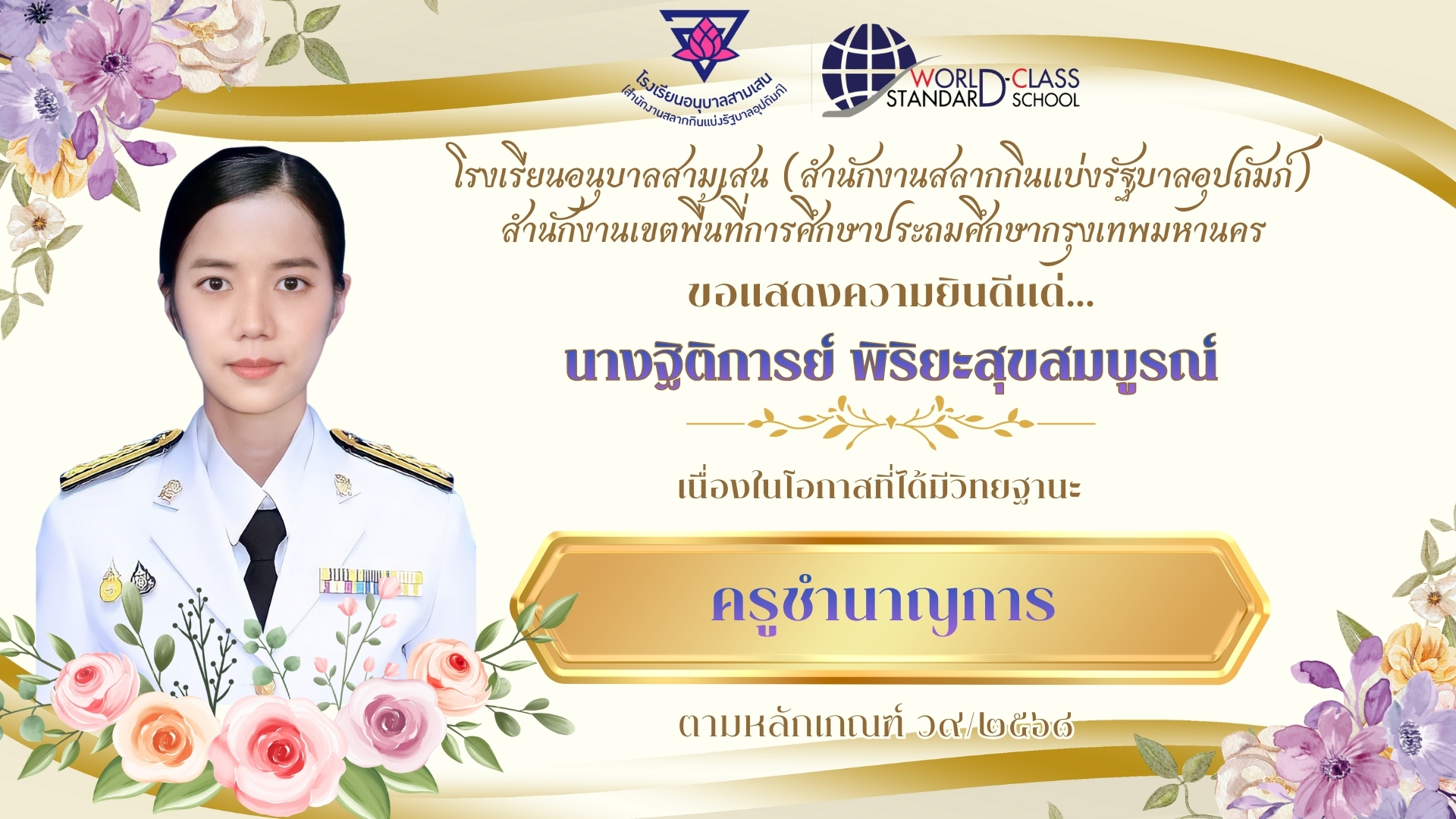 แสดงความยินดีแด่คุณครูที่ได้รับการแต่งตั้งเลื่อนวิทยะฐานะ ครูชำนาญการ