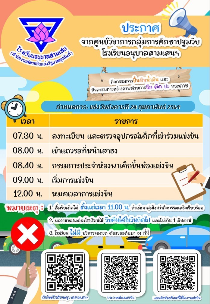 การประชุมชี้แจงการแข่งขันศิลปหัตถกรรมนักเรียน ครั้งที่ 73 ปีการศึกษา 2568 สนามการแข่งขันปั้นดินน้ำมันและกิจกรรมการแข่งขันการสร้างภาพ ระดับปฐมวัย ณ โรงเรียนอนุบาลสามเสนฯ