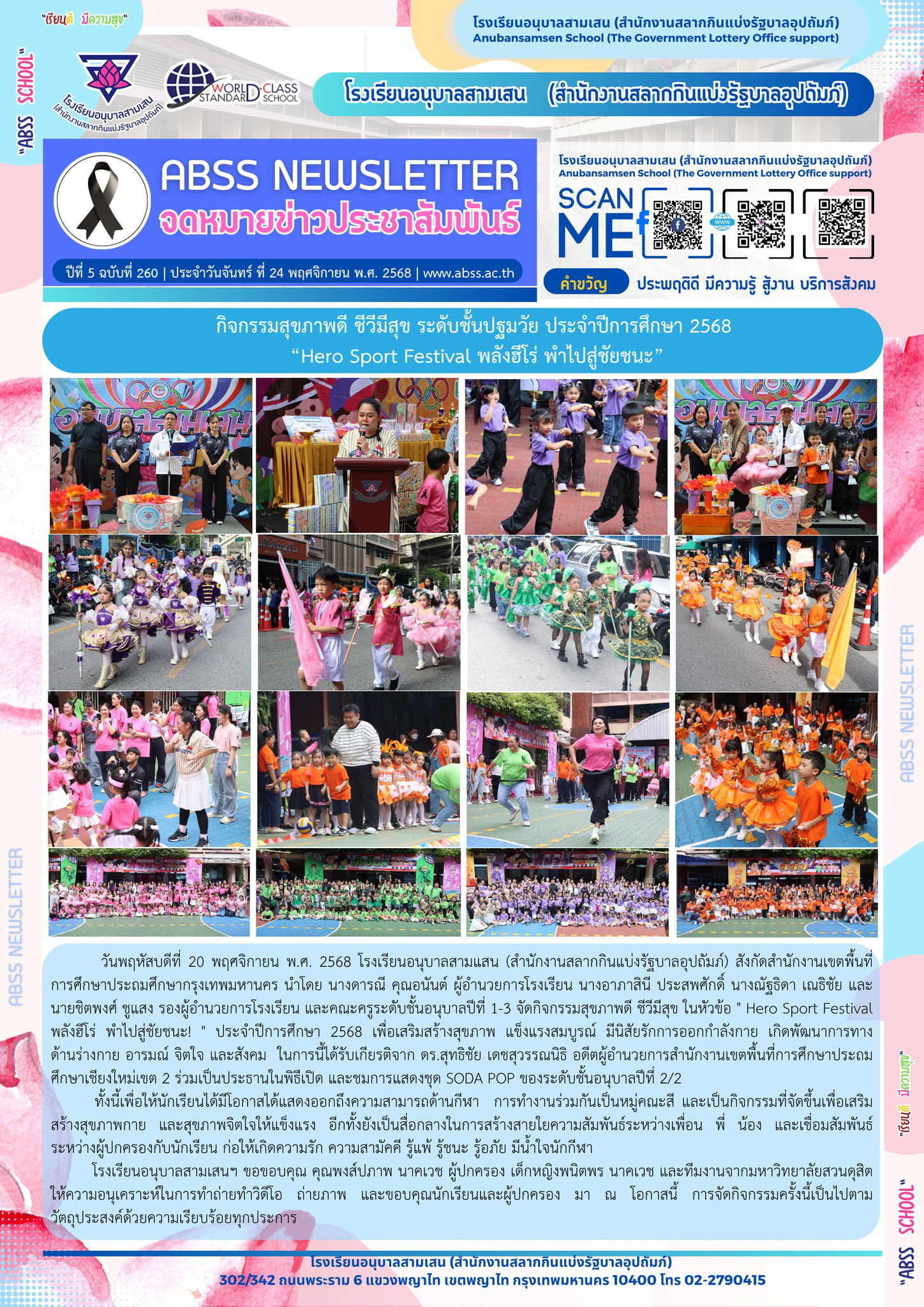 กิจกรรมสุขภาพดี ชีวีมีสุข ระดับชั้นปฐมวัย ประจำปีการศึกษา 2568 “Hero Sport Festival พลังฮีโร่ พำไปสู่ชัยชนะ”