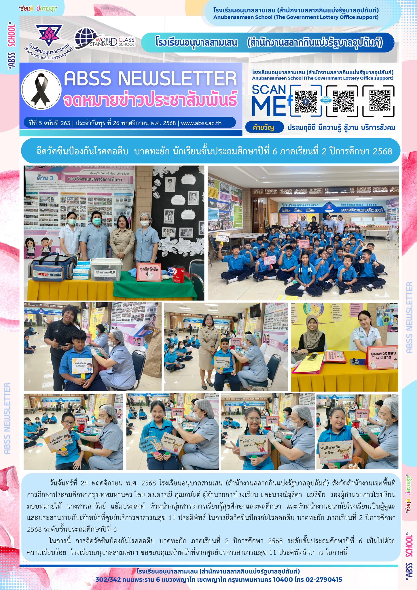 ฉีดวัคซีนป้องกันโรคคอตีบ บาดทะยัก นักเรียนชั้นประถมศึกษาปีที่ 6 ภาคเรียนที่ 2 ปีการศึกษา 2568