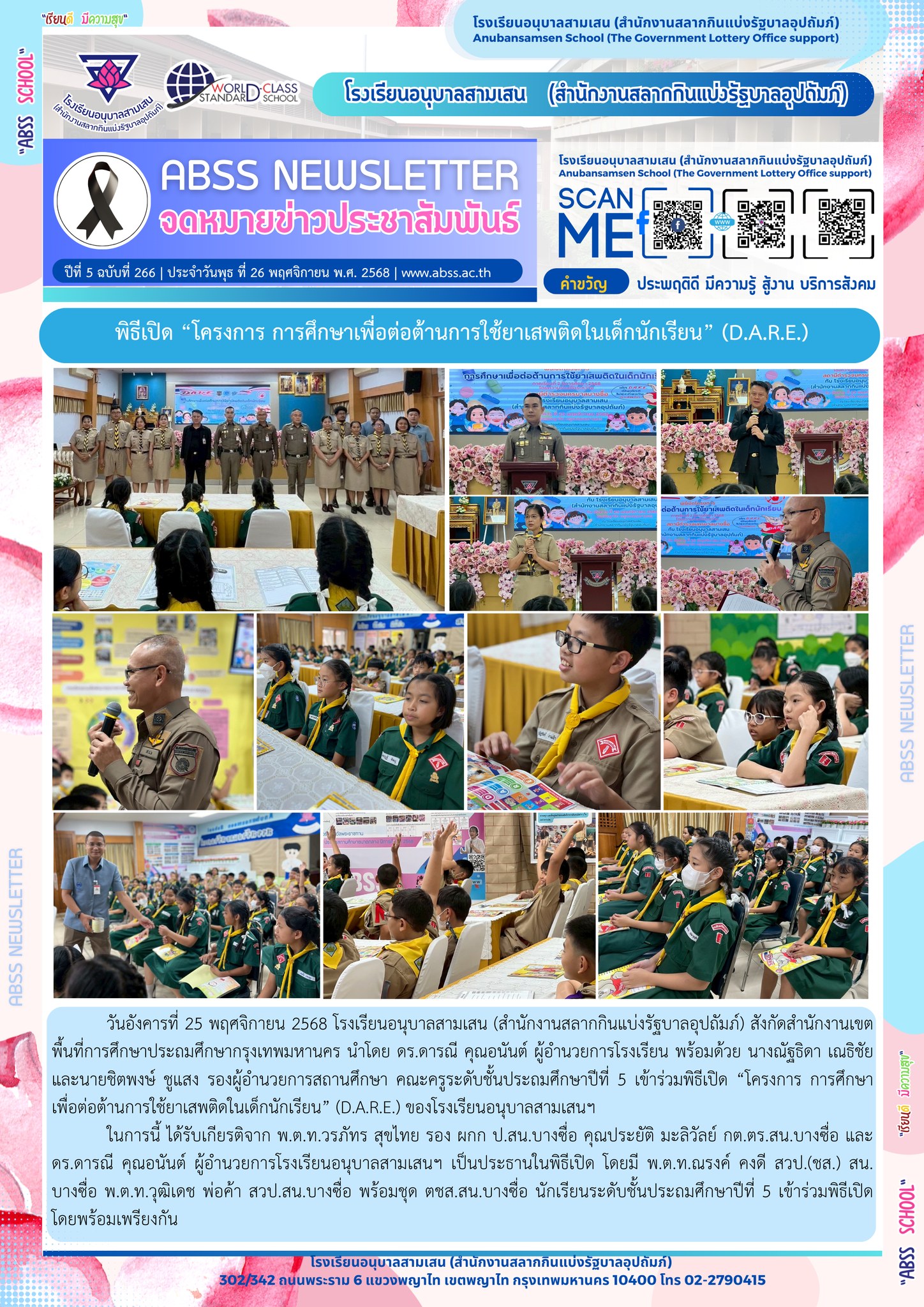 พิธีเปิด “โครงการ การศึกษาเพื่อต่อต้านการใช้ยาเสพติดในเด็กนักเรียน” (D.A.R.E.)