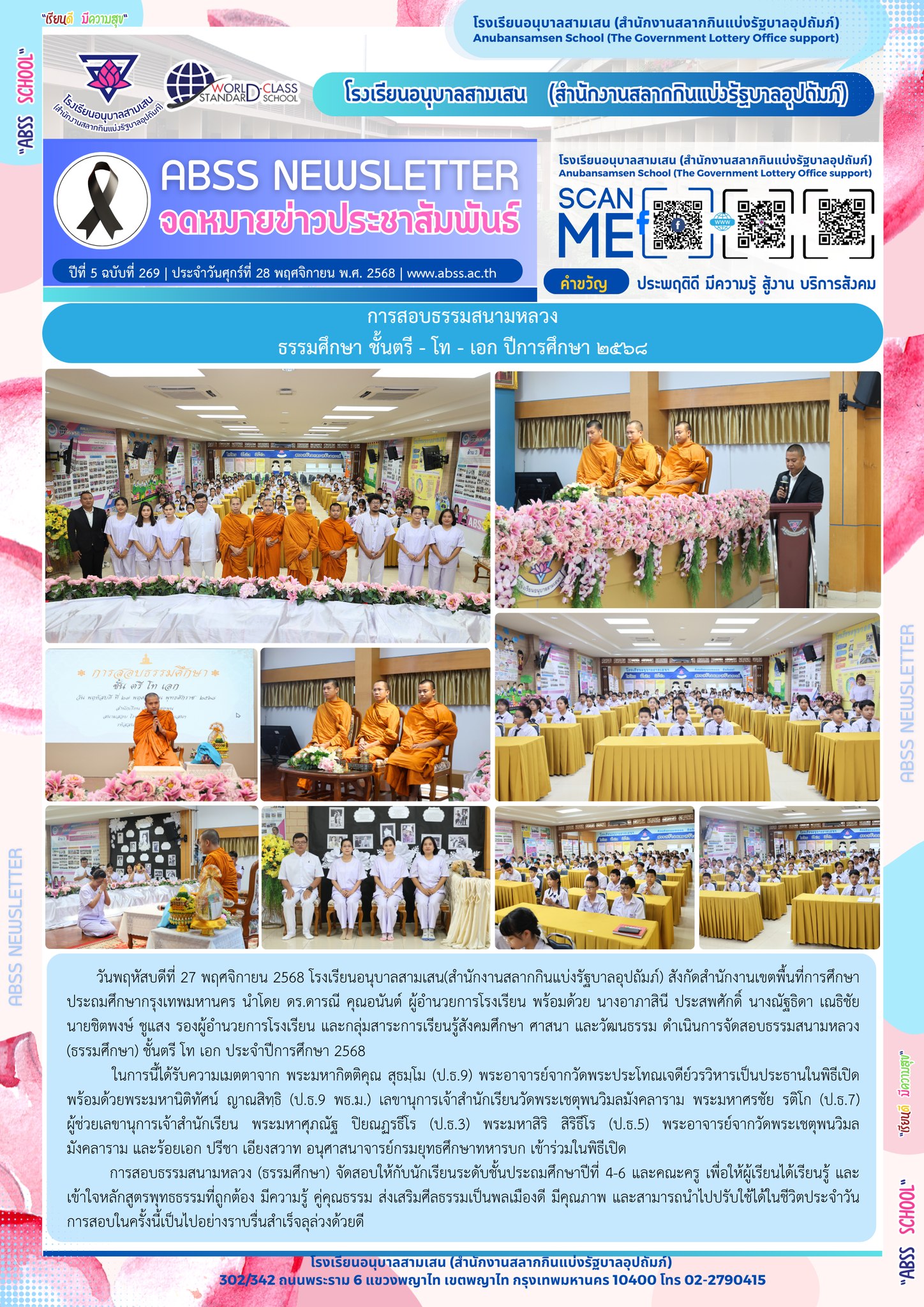 การสอบธรรมสนามหลวง ธรรมศึกษา ชั้นตรี - โท - เอก ปีการศึกษา ๒๕๖๘