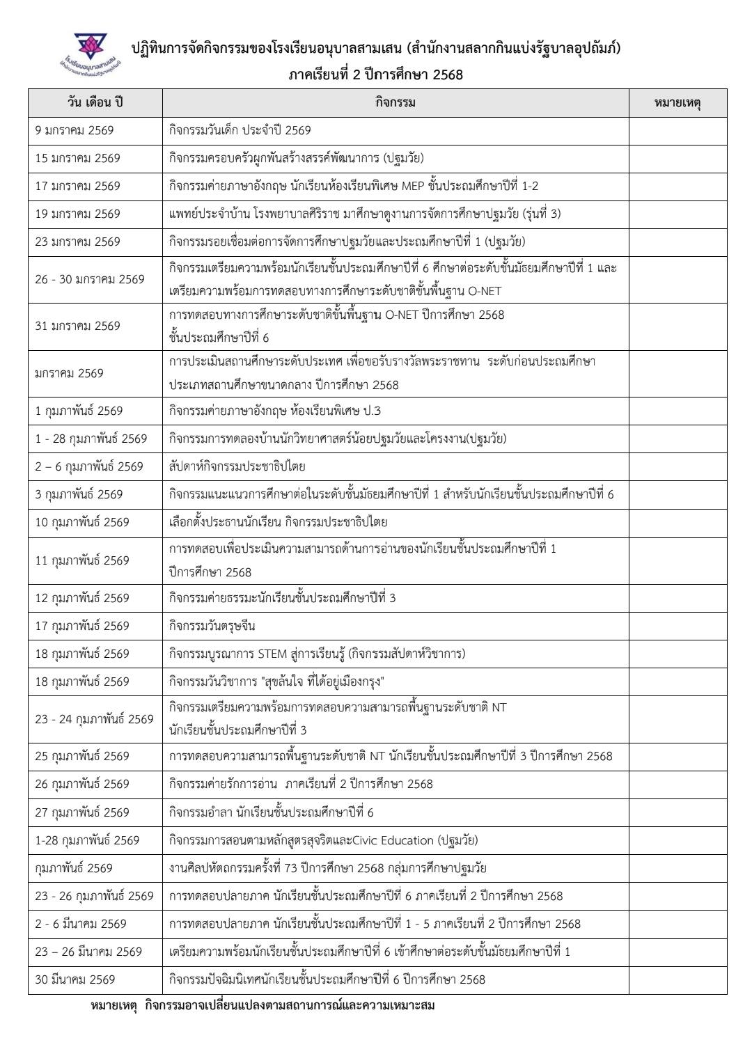 การประชุมผู้ปกครองนักเรียนชั้นอนุบาลปีที่ 1 ถึงชั้นประถมศึกษาปีที่ 6 ประจำภาคเรียนที่ 2 ปีการศึกษา 2568