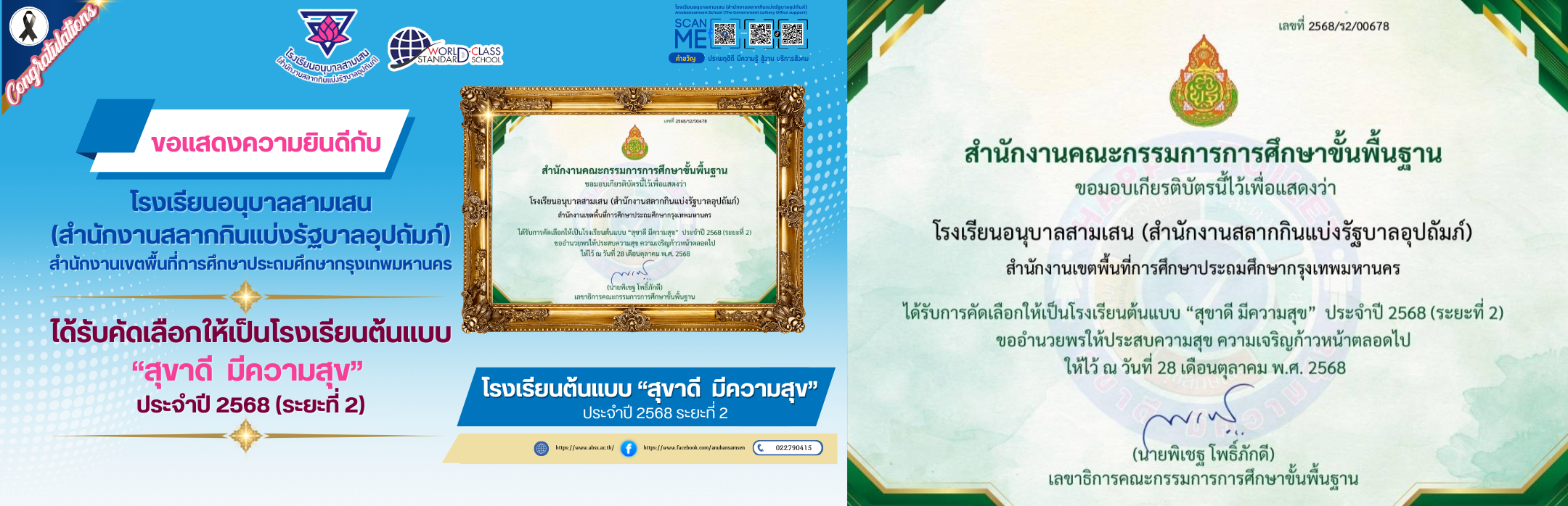 โรงเรียนอนุบาลสามเสน (สำนักงานสลากกินแบ่งรัฐบาลอุปถัมภ์) มีจุดมุ่งหมายที่จะพัฒนาด้านคุณธรรมและความโปร่งใสในหน่วยงานภาครัฐ ให้ความร่วมมือและเข้าร่วมการประเมินคุณธรรมและความโปร่งใสในการดำเนินงานของหน่วยงานภาครัฐ ปีงบประมาณ พ.ศ. 2561 – 2565 โดยใช้แนวทางและเครื่องมือการประเมินตามที่สำนักงานคณะกรรมการป้องกันและปราบปรามการทุจริตแห่งชาติ หรือ สำนักงาน ป.ป.ช. กำหนด