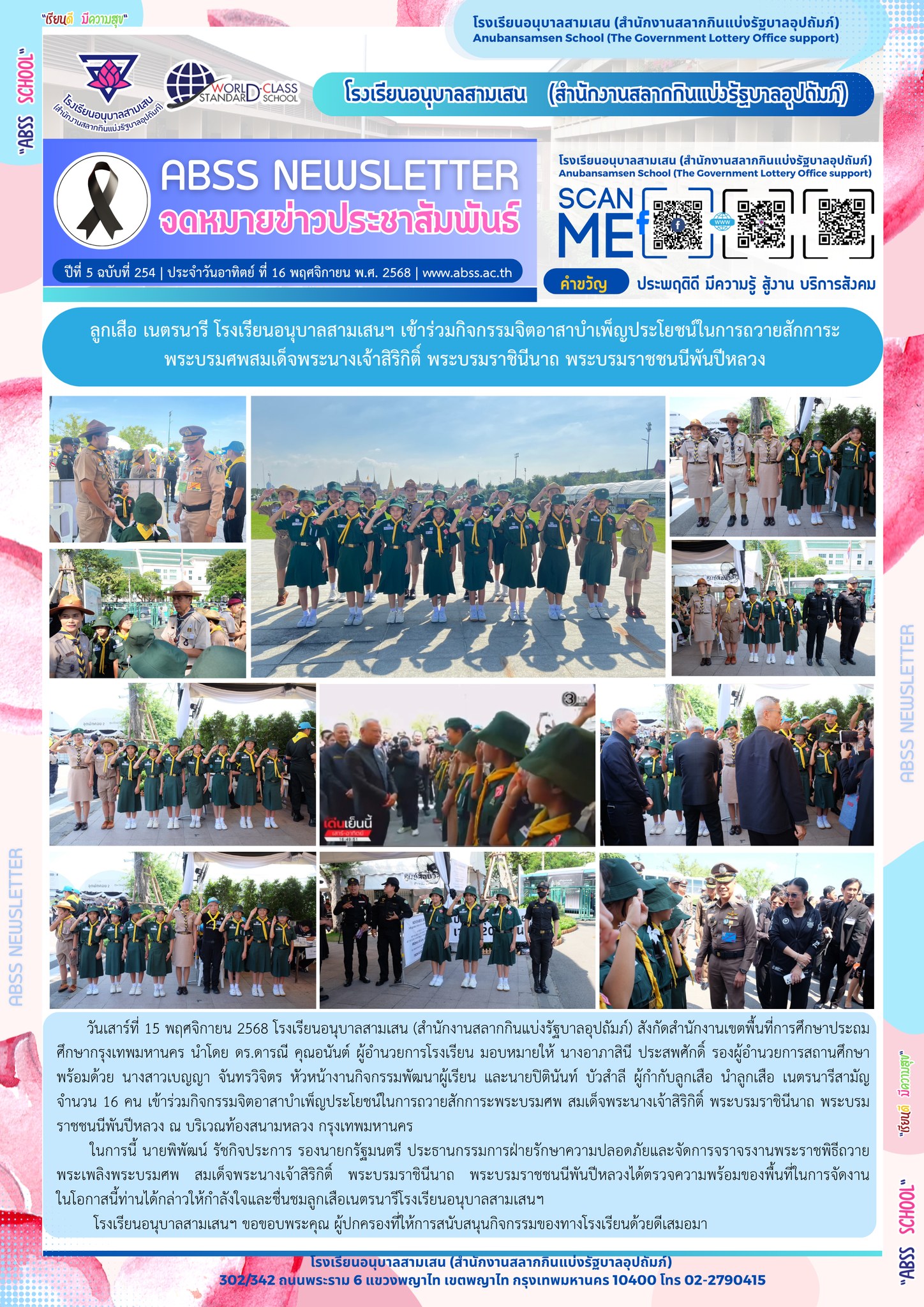 ลูกเสือเนตรนารี โรงเรียนอนุบาลสามเสนฯ เข้าร่วมกิจกรรมจิตอาสาบำเพ็ญประโยชน์ในการถวายสักการะพระบรมศพสมเด็จพระนางเจ้าสิริกิติ์ พระบรมราชินีนาถ พระบรมราชชนนีพันปีหลวง