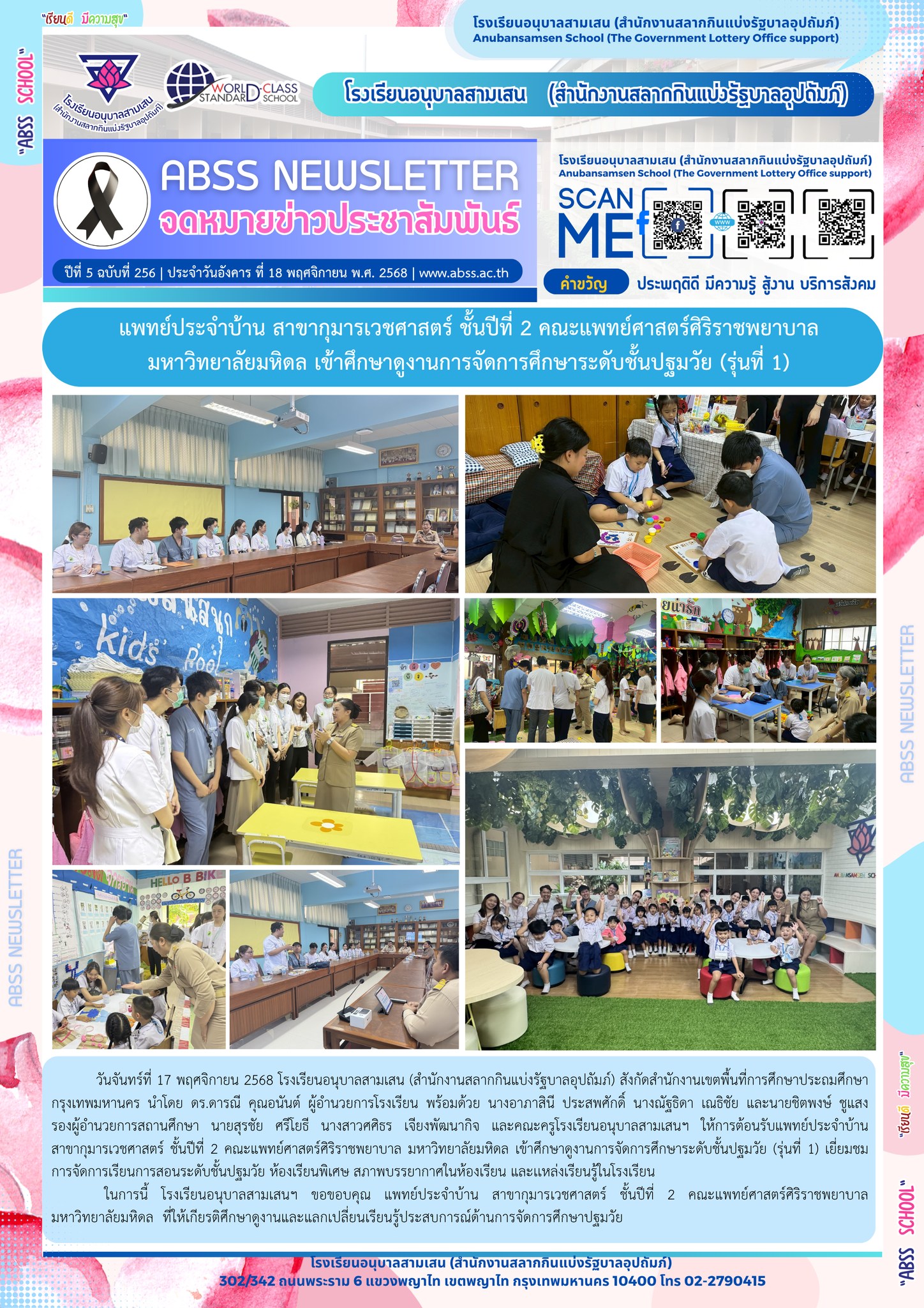 แพทย์ประจำบ้าน สาขากุมารเวชศาสตร์ ชั้นปีที่ 2 คณะแพทย์ศาสตร์ศิริราชพยาบาล มหาวิทยาลัยมหิดล เข้าศึกษาดูงานการจัดการศึกษาระดับชั้นปฐมวัย (รุ่นที่ 1)