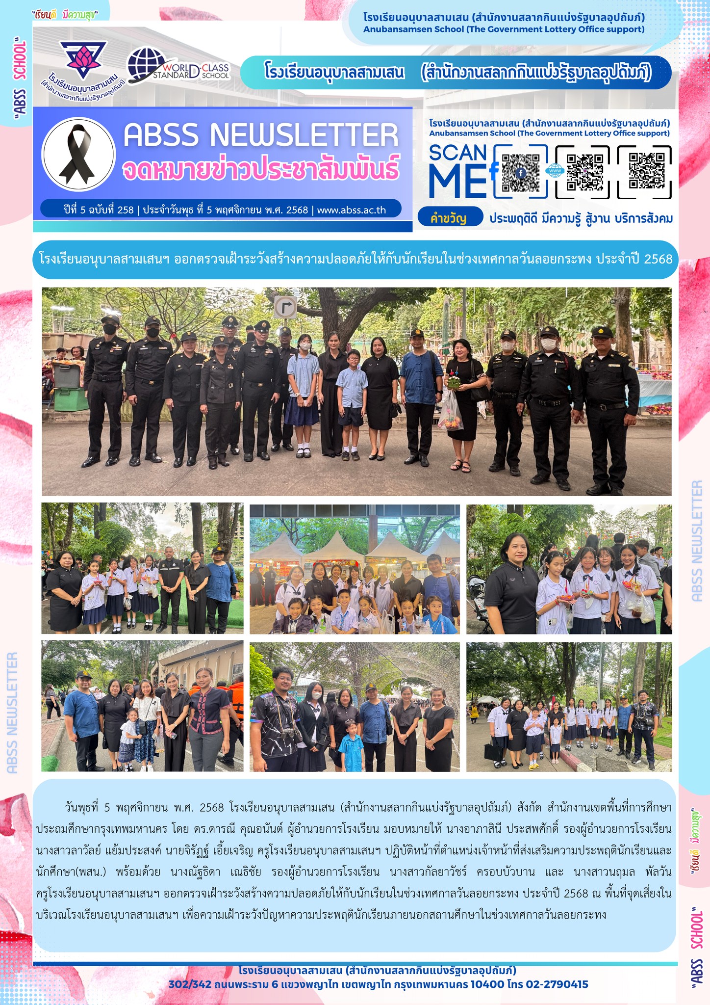 ออกตรวจเฝ้าระวังความปลอดภัยให้กับนักเรียนในช่วงเทศกาลวันลอยกระทง
