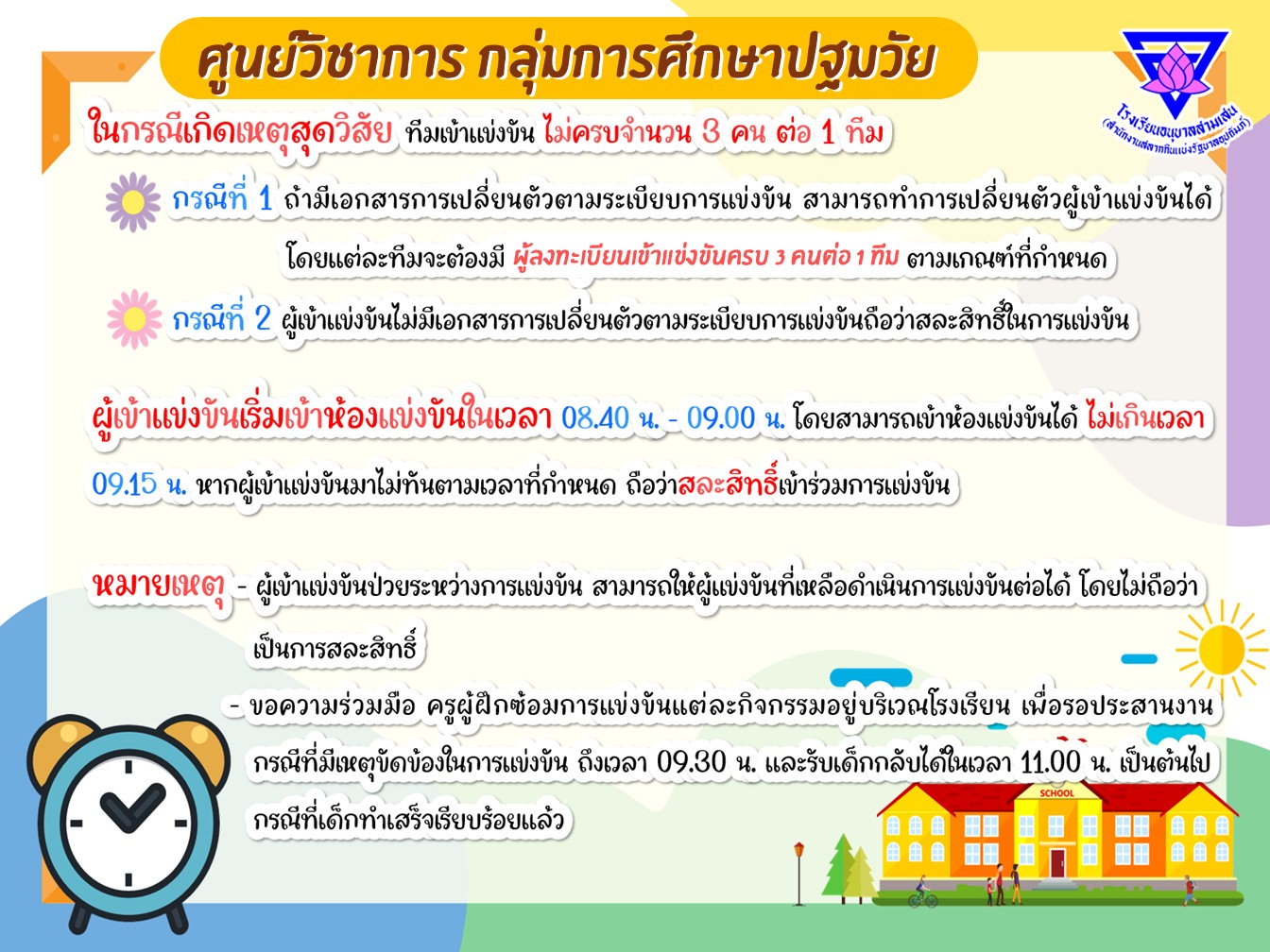 การประชุมชี้แจงการแข่งขันศิลปหัตถกรรมนักเรียน ครั้งที่ 73 ปีการศึกษา 2568 สนามการแข่งขันปั้นดินน้ำมันและกิจกรรมการแข่งขันการสร้างภาพ ระดับปฐมวัย ณ โรงเรียนอนุบาลสามเสนฯ