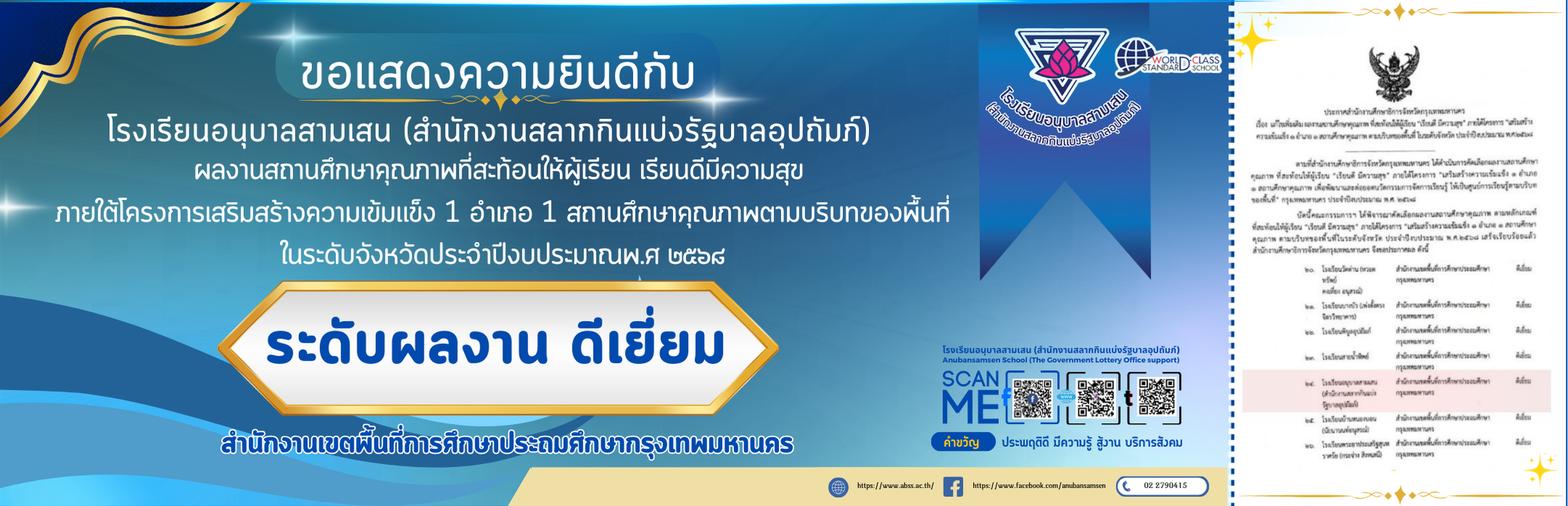 ประกาศโรงเรียนอนุบาลสามเสน (สำนักงานสลากกินแบ่งรัฐบาลอุปถัมภ์) เรื่อง การรับสมัครและคัดเลือกนักเรียน ปีการศึกษา 2568