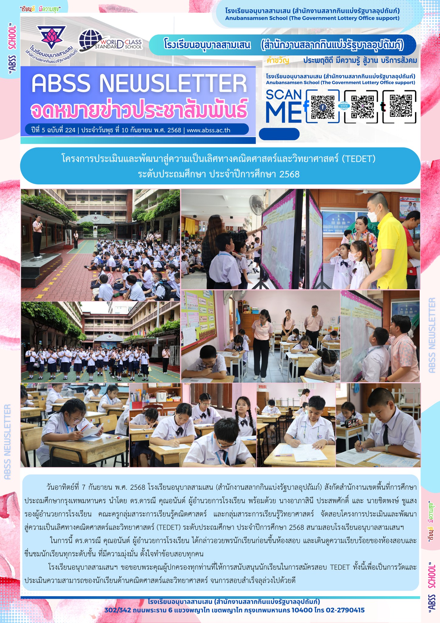 โครงการประเมินและพัฒนาสู่ความเป็นเลิศทางคณิตศาสตร์และวิทยาศาสตร์ (TEDET) ระดับประถมศึกษา ประจำปีการศึกษา 2568