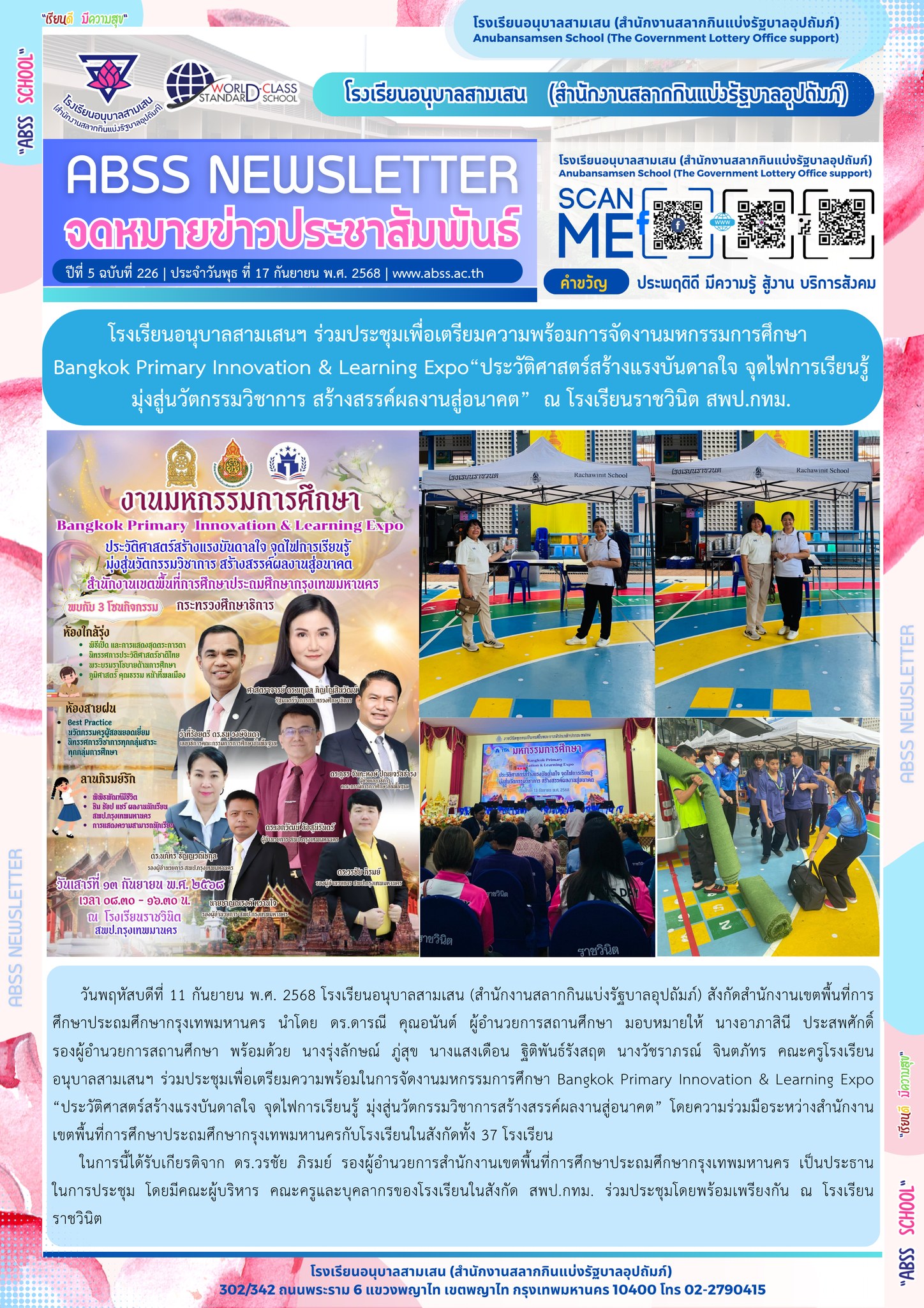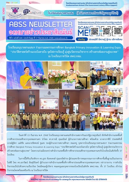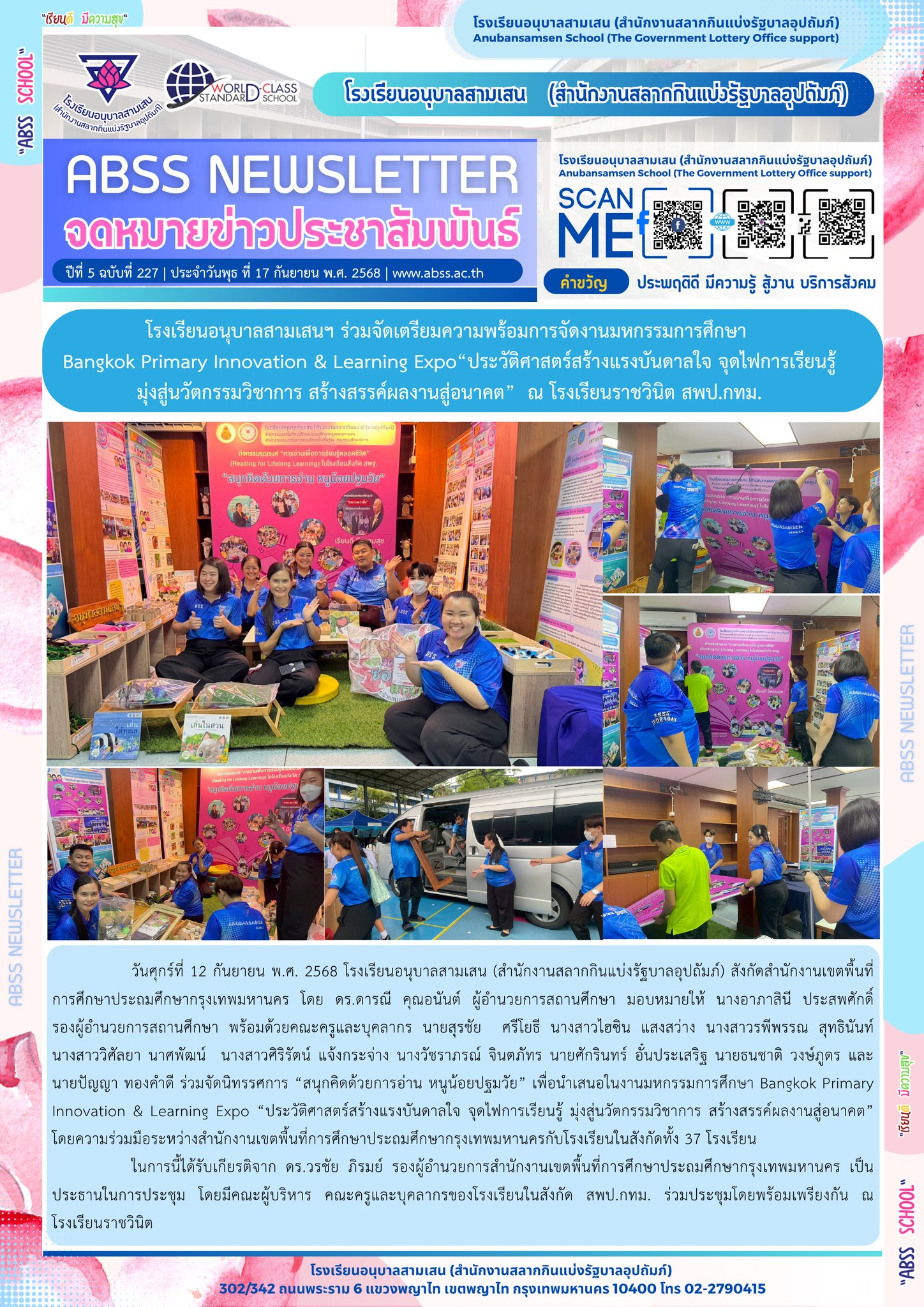 โรงเรียนอนุบาลสามเสนฯ ร่วมงานมหกรรมการศึกษา Bangkok Primary Innovation & Learning Expo “ประวัติศาสตร์สร้างแรงบันดาลใจ จุดไฟการเรียนรู้ มุ่งสู่นวัตกรรมวิชาการ สร้างสรรค์ผลงานสู่อนาคต” ณ โรงเรียนราชวินิต สพป.กทม.
