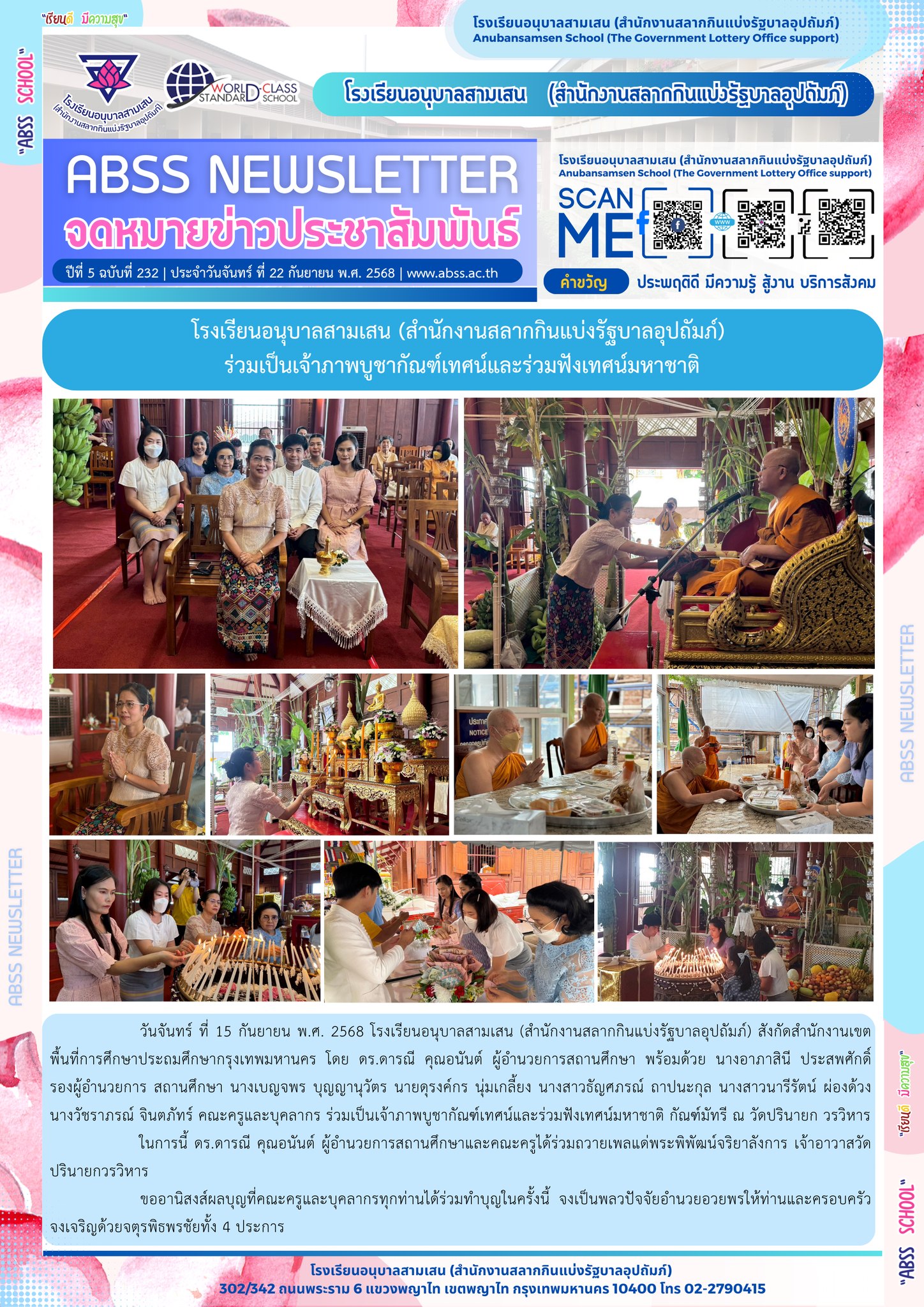 โรงเรียนอนุบาลสามเสน (สำนักงานสลากกินแบ่งรัฐบาลอุปถัมภ์) ร่วมเป็นเจ้าภาพบูชากัณฑ์เทศน์และร่วมฟังเทศน์มหาชาติ