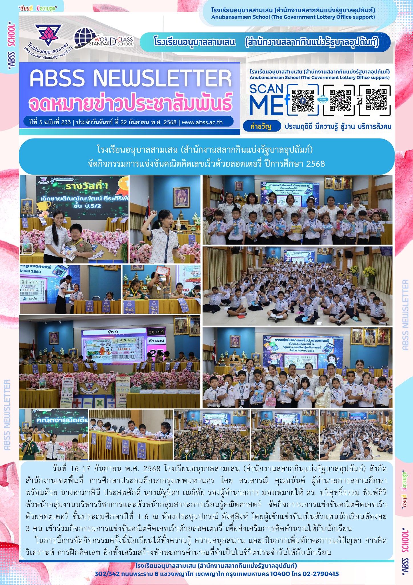 โรงเรียนอนุบาลสามเสน (สำนักงานสลากกินแบ่งรัฐบาลอุปถัมภ์) จัดกิจกรรมการเเข่งขันคณิตคิดเลขเร็วด้วยลอตเตอรี่ ปีการศึกษา 2568