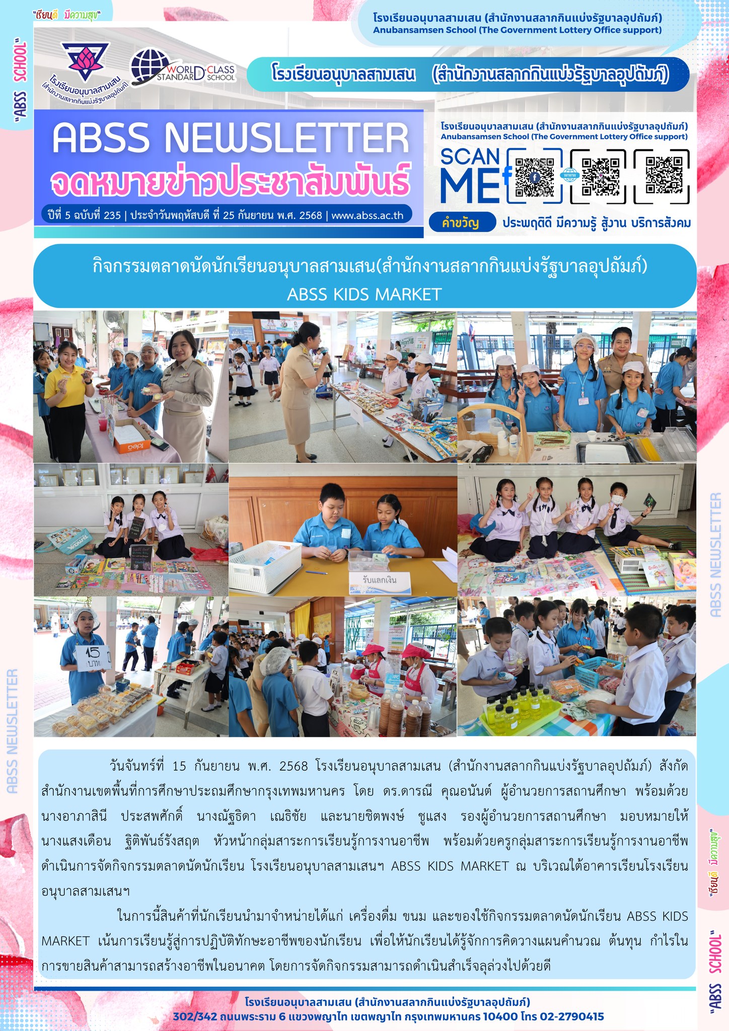 กิจกรรมตลาดนัดนักเรียนอนุบาลสามเสน (สำนักงานสลากกินแบ่งรัฐบาลอุปถัมภ์) ABSS KIDS MARKET