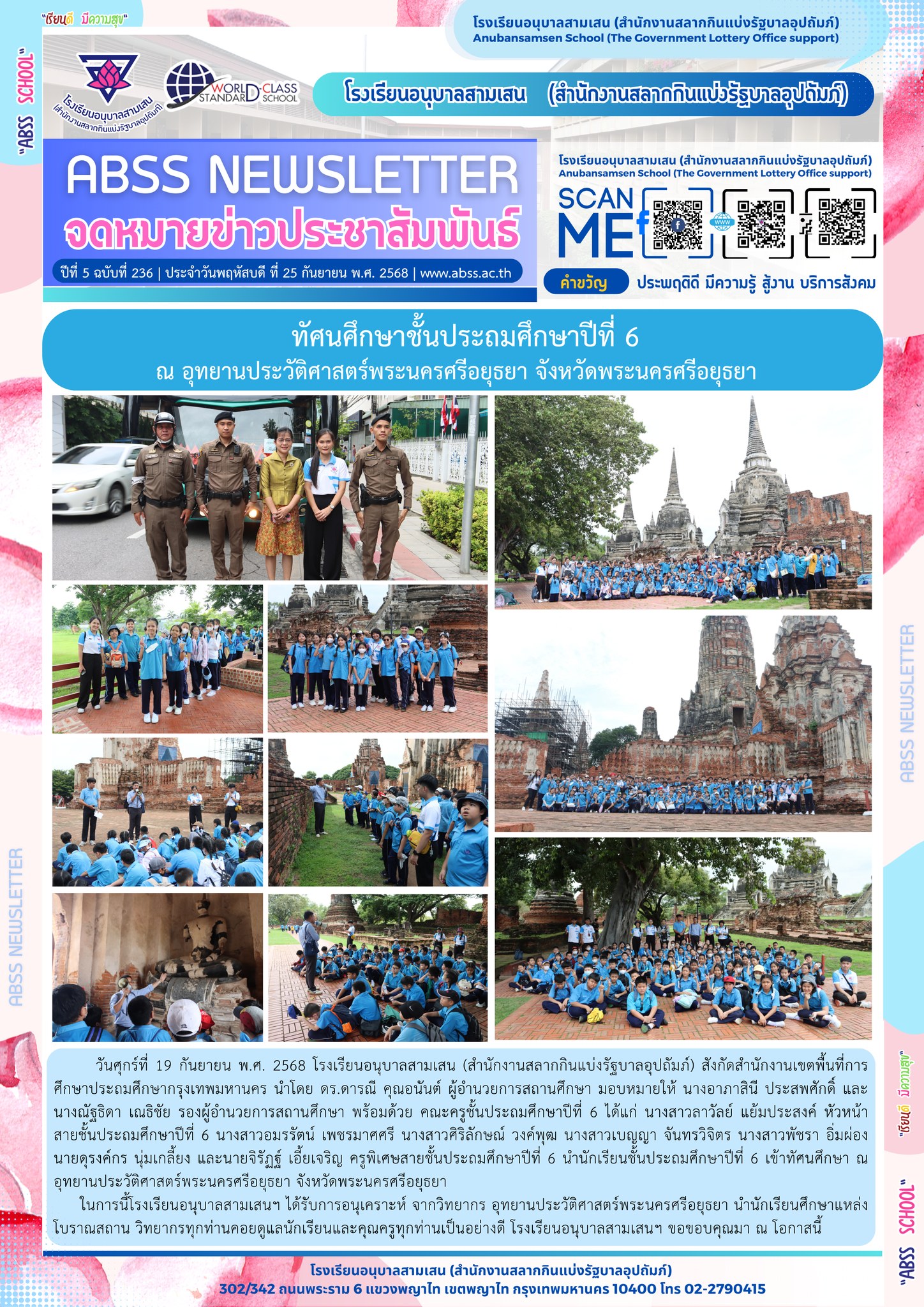 ทัศนศึกษาชั้นประถมศึกษาปีที่ 6 ณ อุทยานประวัติศาสตร์พระนครศรีอยุธยา จังหวัดพระนครศรีอยุธยา