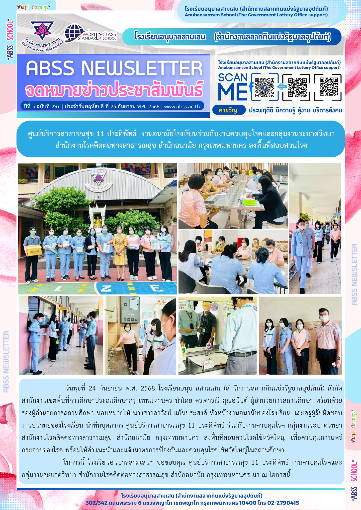 ศูนย์บริการสาธารณสุข 11 ประดิพัทธ์ งานอนามัยโรงเรียนร่วมกับงานควบคุมโรคและกลุ่มงานระบาดวิทยา สำนักงานโรคติดต่อทางสาธารณสุข สำนักอนามัย กรุงเทพมหานคร ลงพื้นที่สอบสวนโรค