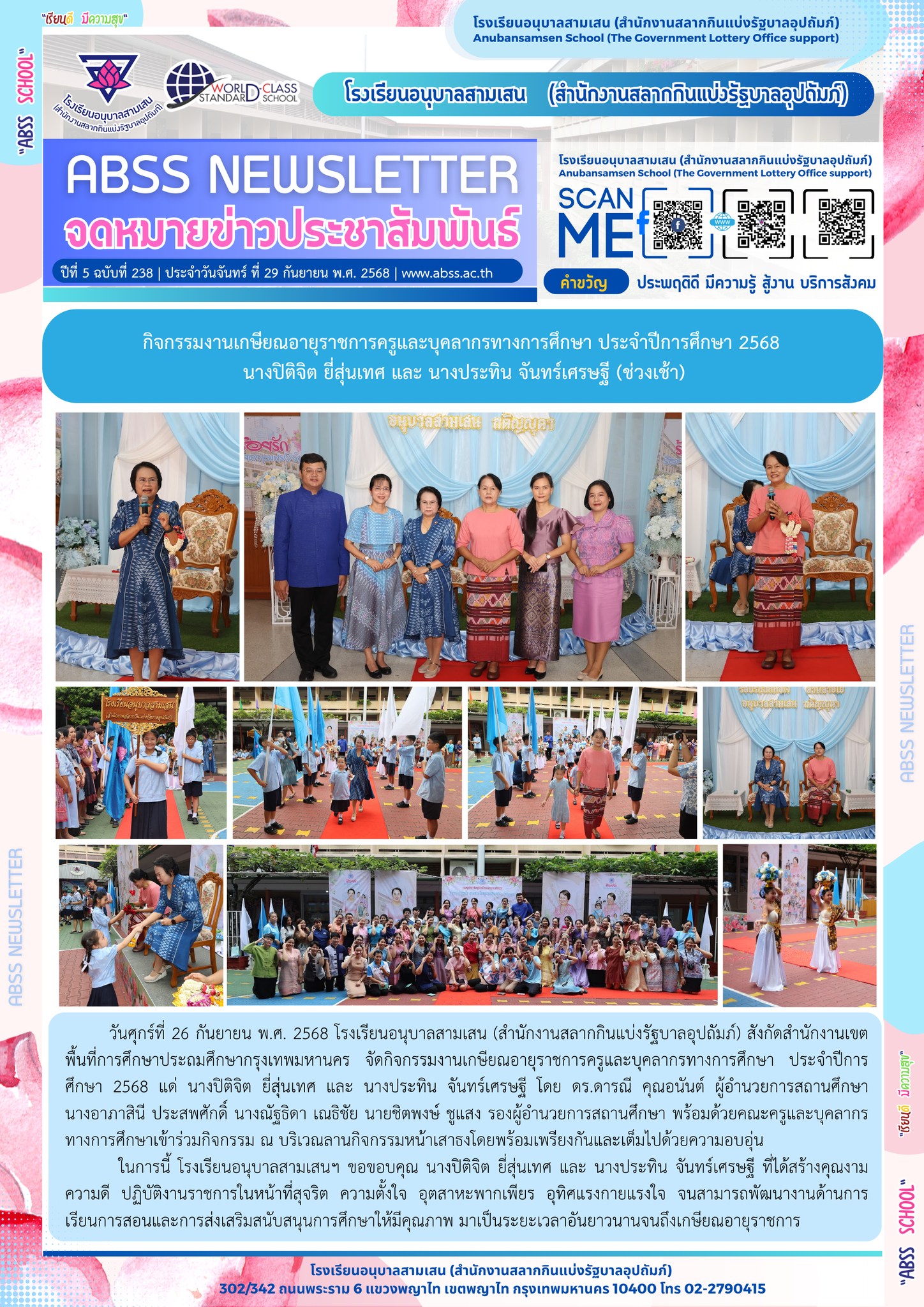 กิจกรรมงานเกษียณอายุราชการครูและบุคลากรทางการศึกษา ประจำปีการศึกษา 2568 นางปิติจิต ยี่สุ่นเทศ และ นางประทิน จันทร์เศรษฐี